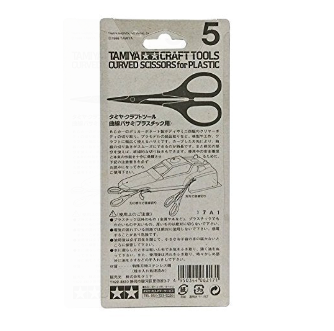 مقص معكوف الطرف ليسهل عملية قص الهياكل المصنوعة من البلاستيك الكربوني (Polycarbonate Body)، ومناسب للبلاستيك عموما.